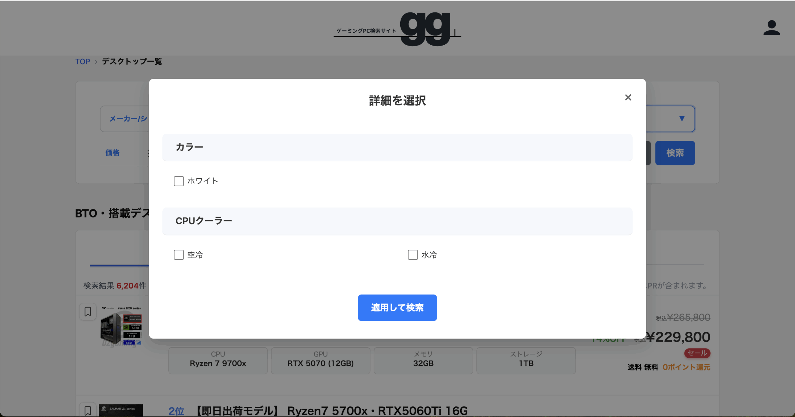 当社が運営する国内最大級のゲーミングPC検索サイト「gg(https://good-gamers.jp)」にて、デスクトップPCの商品ページにCPUクーラー(空冷・水冷)の情報を追加し、冷却方式による絞り込み検索に対応しました。