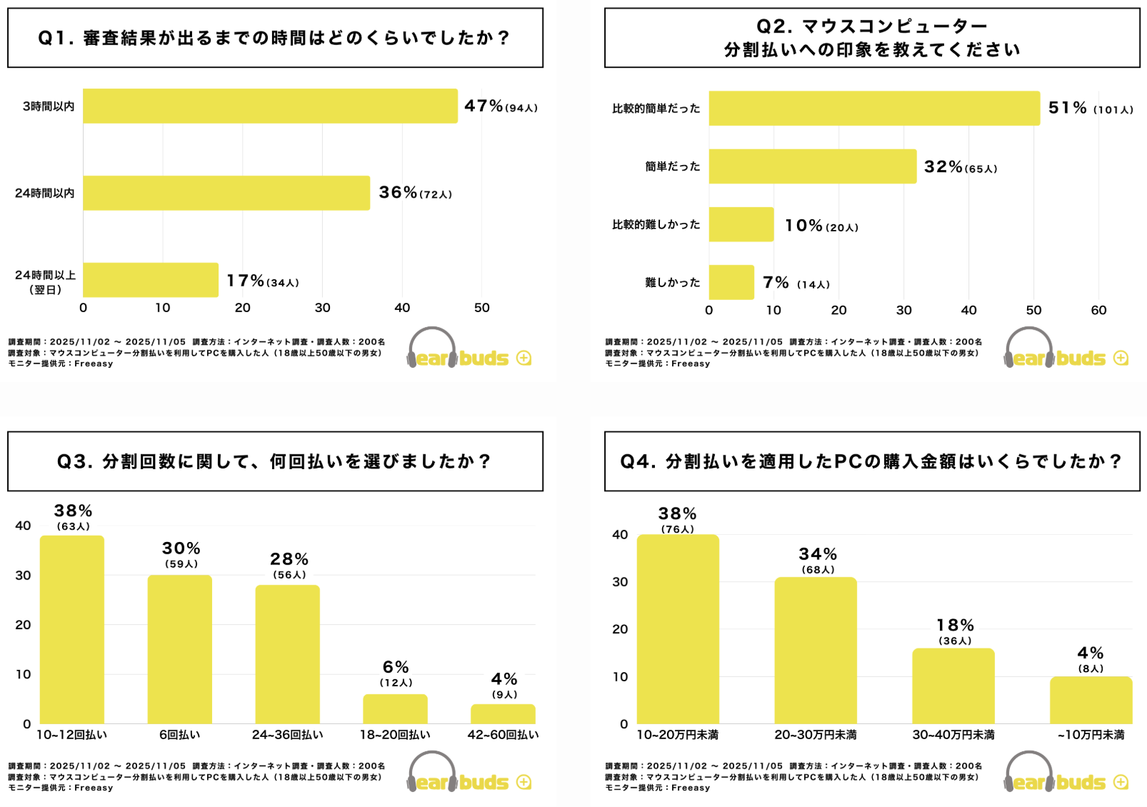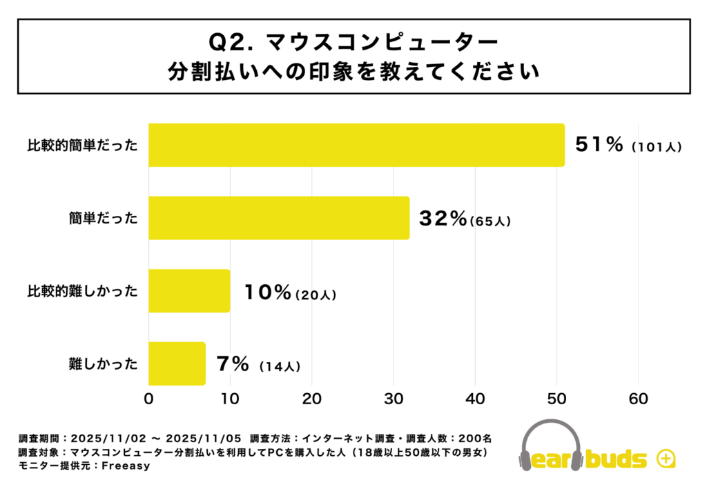 弊社が運営する、PCをお得に購入するための専門メディア「イヤバズ」は、マウスコンピューターの分割払いを利用してPCを購入した人200名を対象に、利用実態に関する独自アンケートを実施しました。