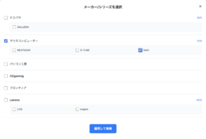 gg内のコラボモデルを検索できるページにおいて、「.1」が展開するゲーミングPCも検索可能となります。