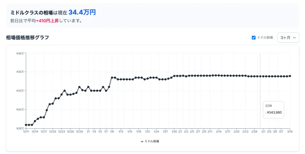 月初と月末で変動率を比較すると+9%の値上がりとなっており、ミドル帯の構成にも関わらず価格の上昇が続くのは、需要の高さからくるものだと考えられます。