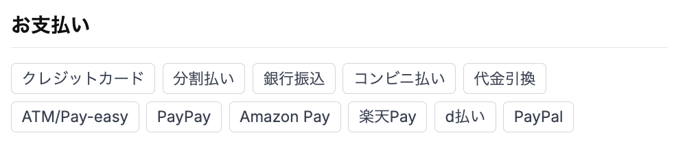 ① 製品詳細ページに支払い方法を表示